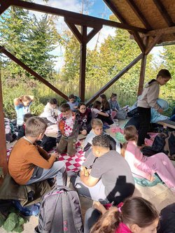 Tako okrijepljeni, krenuli smo pješice prema još jednom vrhu – Skandali gdje su već pristigli neki roditelji te smo se odvezli kućama veseli i sretni. Samo taj dan propješačili smo oko osam kilometara, a tijekom cijelog tjedna naučili smo mnogo. Cijeli tjedan, naravno, nje bilo zadaće. Baš kao i učenici, i mi učiteljice uživale smo u ovako organiziranoj nastavi.