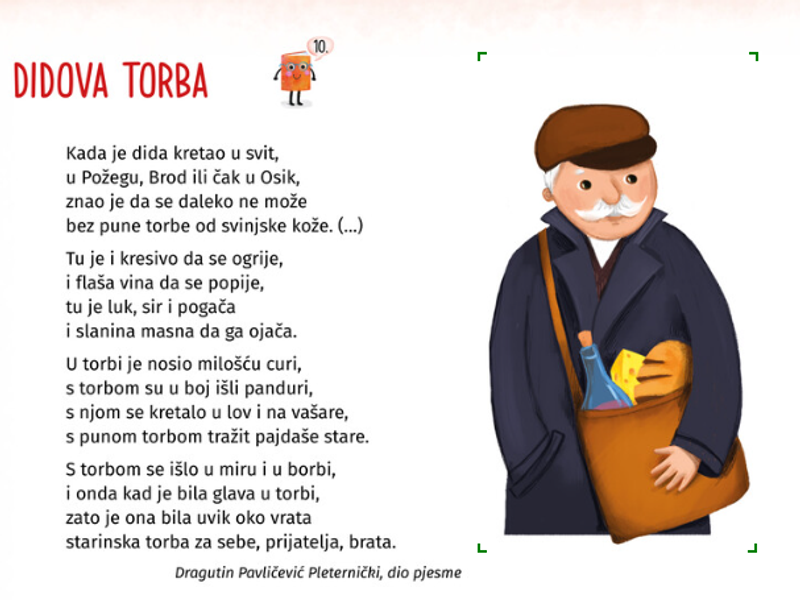Pjesma „Didova torba” nalazi se u Alfinoj čitanci „Čitam i pišem 4”